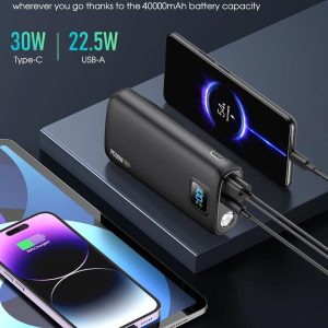 Portable-Charger-Power-Bank – 40000mAh Power Bank PD 30W and QC 4.0 Quick Charging Built-in Bright flashlight LED Display 2 USB 1Type-C Output for Most Electronic Devices on The Market(Carbon Black)