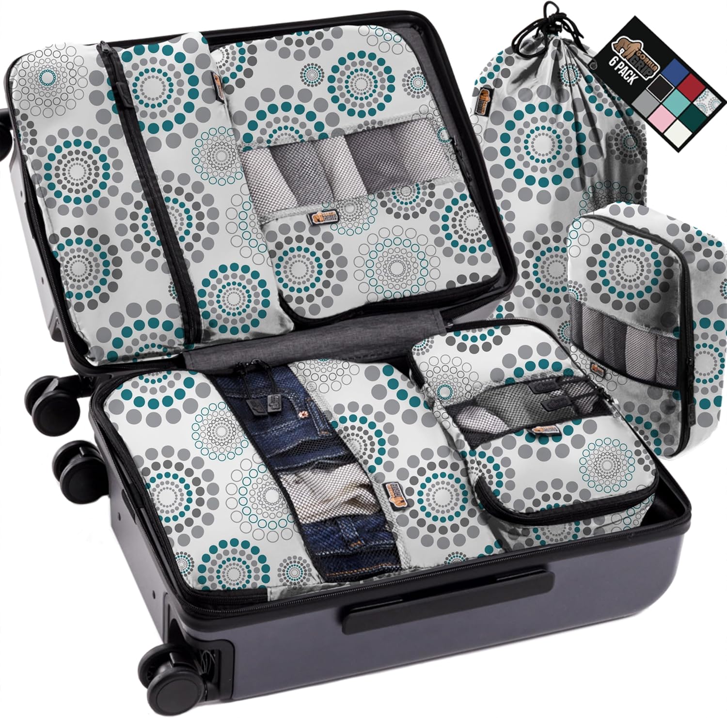 Gorilla Grip 6 Set Packing Cubes, Travel Essentials for Suitcases, Breathable Mesh Organizer Bags for Clothes Toiletries Shoes and Laundry, Luggage and Backpack Carry On Airplane Accessories Spiral